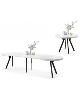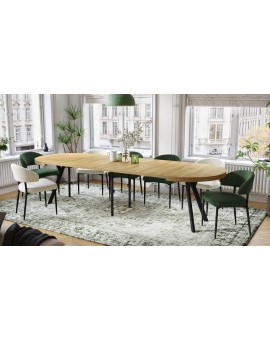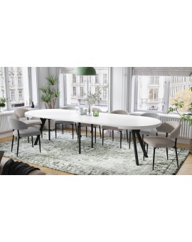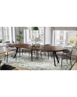 Stôl EXPANSO je dokonalou kombináciou praktickosti a moderného dizajnu. Vďaka premyslenej konštrukcii s doskou stola, ktorá sa vysúva na synchrónnych vodiacich lištách a prídavným vložkám, je možné stôl ľahko zväčšiť a dosiahnuť pôsobivú dĺžku, ktorá poskytne pohodlný priestor až pre 10-12 osôb. Je to ideálne riešenie pre každodenné stravovanie, ako aj pre väčšie rodinné či spoločenské stretnutia.